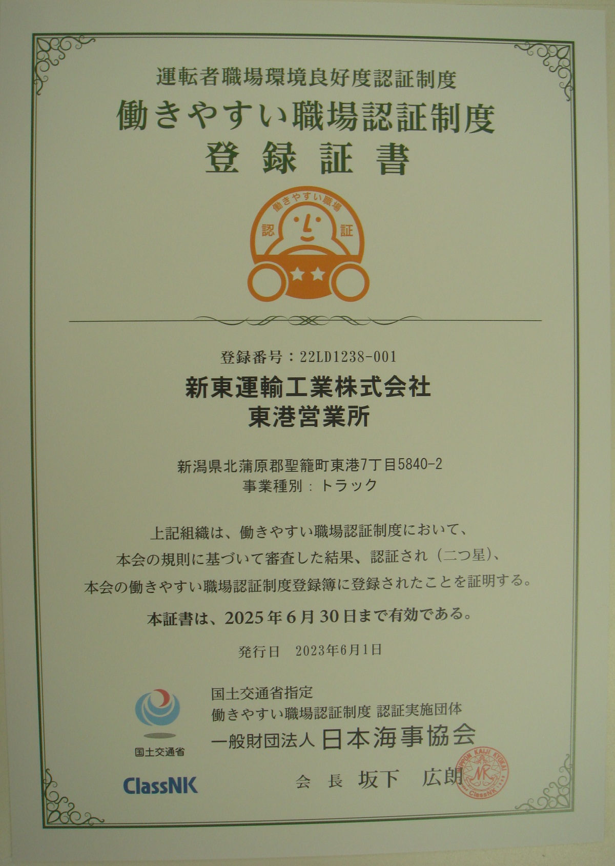 日頃より新東運輸工業をご愛顧いただき誠に有難うございます。